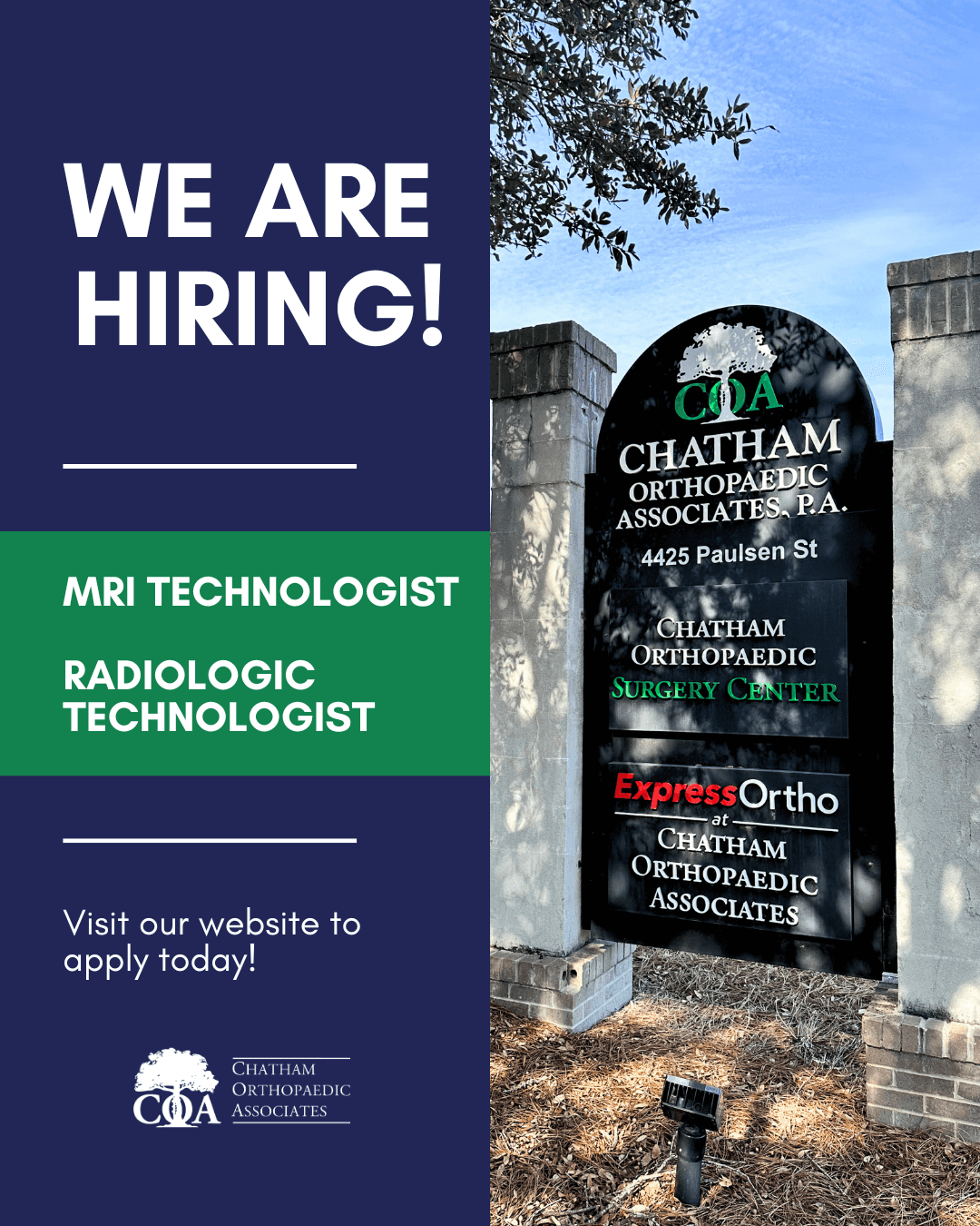 We are expanding our radiologic tech team! We are looking for an energetic and dedicated Radiologic Technologist and MRI Technologist to join our Chatham Orthopaedics team! 🌟